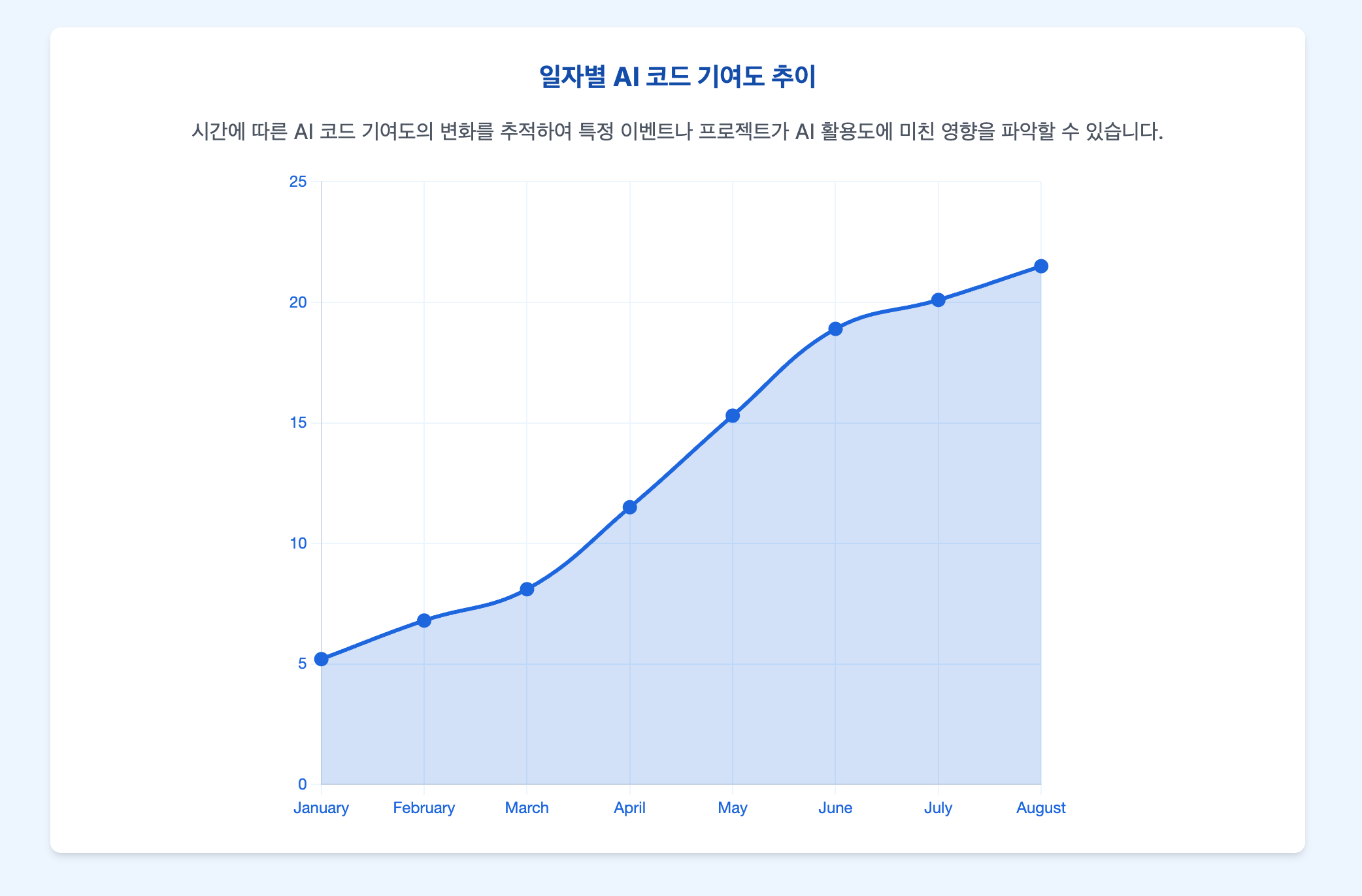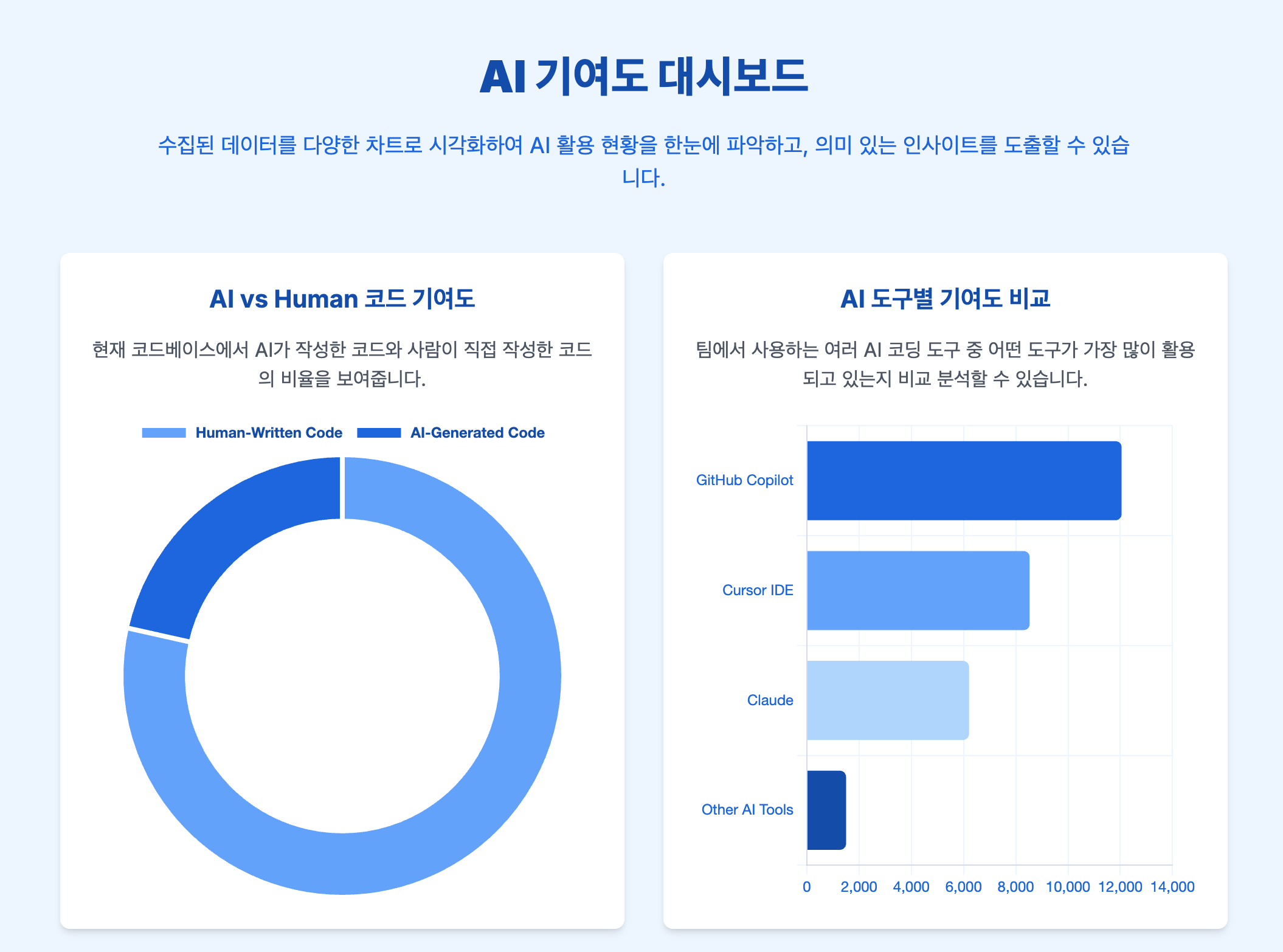 ai_code_data.json 파일에 쌓인 데이터를 활용하면 시간에 따른 AI 코드 기여도의 변화를 그래프로 그릴 수 있어요.
