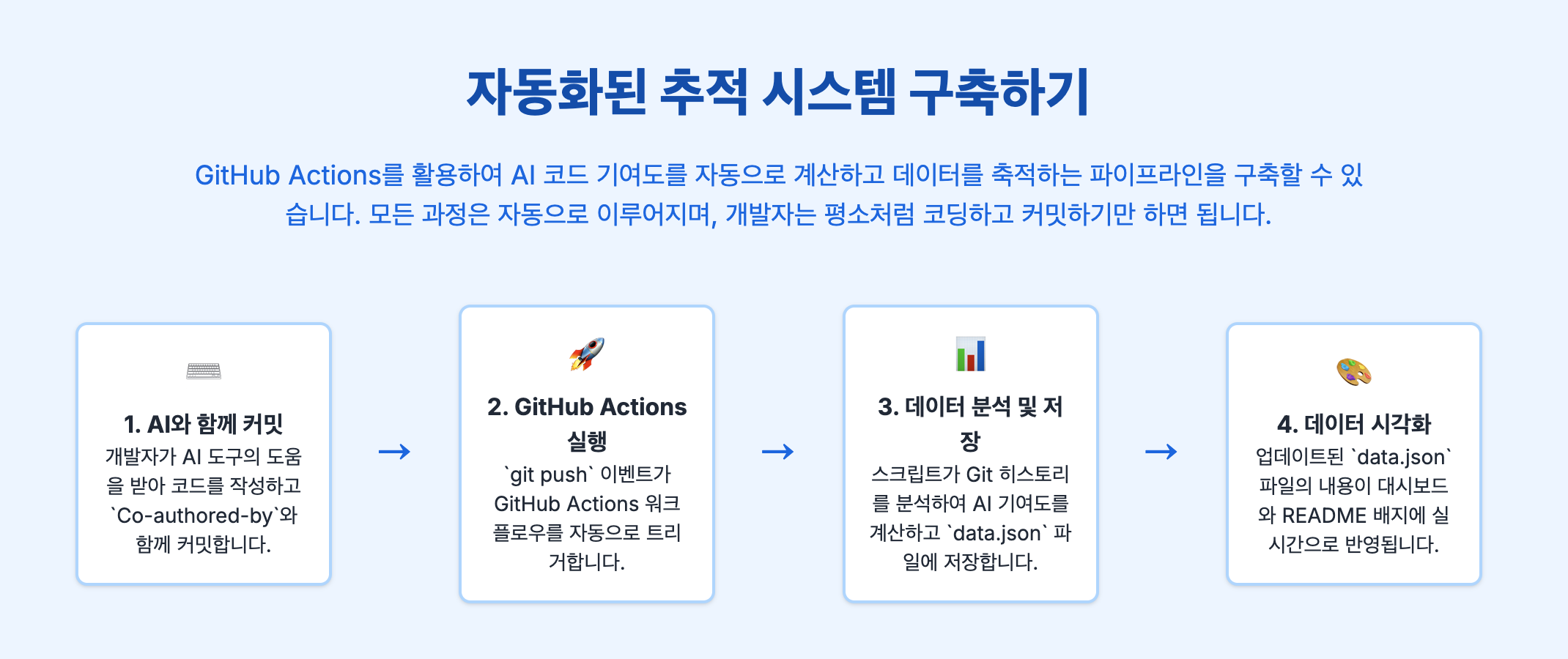 이제 이 아이디어를 실제 시스템으로 만들어볼게요. AI가 작성한 코드가 푸시될 때마다 자동으로 계산해서 그 결과를 보여주는 시스템을 구축해봅시다.